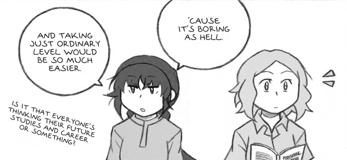 She will only make one or two brief appearances in the comic, and only in flashbacks, but I really like drawing her. Both because of the hair style and because of the clothes. And expressions. (She is way more “cool” than the high-school Hiura.)